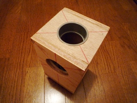| この時点まで、正直バッフル板開口径は判明しておりませんでした。予めここまで製作を進めて、待ち状態でした。WEBを色々調べると皆さんの解析力でなんとか口径が判明し、製作を再開しました。 | |