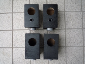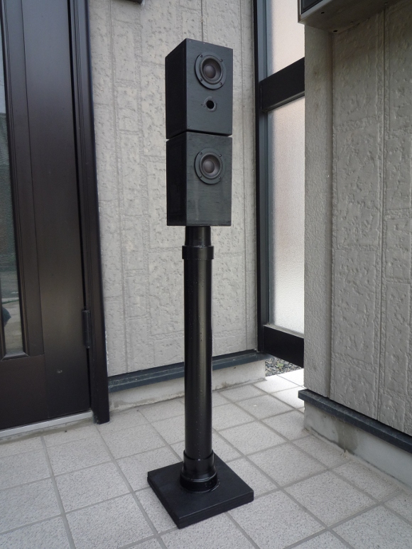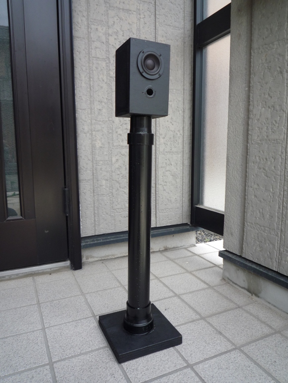 | 色を合わせるために支柱のパイプも黒色に塗装しましょう。それではスピーカ・エンクロージャの部分を作って行きましょう。 | |