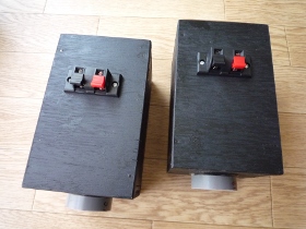 | 早速自作のD級アンプを接続し、エージングを数時間行いました。どちらのシステムもなかなか良い音で鳴っています。シングル型はボーカルが前に出てくるように聞こえます。ツイン型は音圧の威圧感があって大迫力です。これから色々とじっくり聴いてみたいと思います。久しぶりのスピーカー製作で、感動しました。毎日少しずつ作るというというのは、とても楽しいですね。 | |