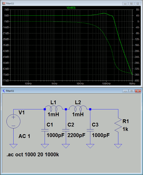 | (ローパスフィルタ回路のシミュレーション) | |
