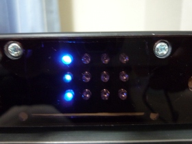 | ボタンのチョン押しで機器の電源が入ります。ONの機器の赤色LEDが点灯します。この状態では連続動作となります。更にチョン押しをするとスリープタイマーが15⇒30⇒45⇒連続の切換えを繰り返します。3個の青色LEDで時間の表示を行います。強引なボタン長押しで電源OFFとなります。 | |