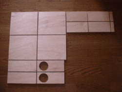 | ステレオ分作りますので記事の板取が2セット分必要になります。合板の大きさに合わせて板取を新たにグラフ用紙で書き直しました。 | |