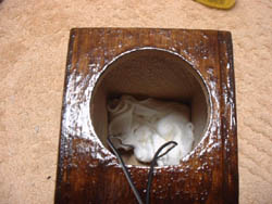 | 一応ボロ布を丸めて背面に接着しておきます。従来の経験から少し入れておくほうが良いと思います。 | |