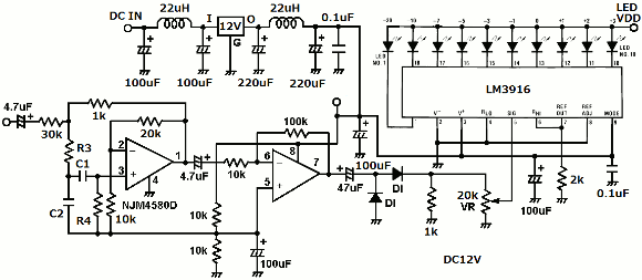 | (バンドパス・フィルターとVUメーター回路図) | |