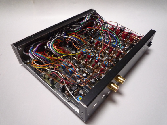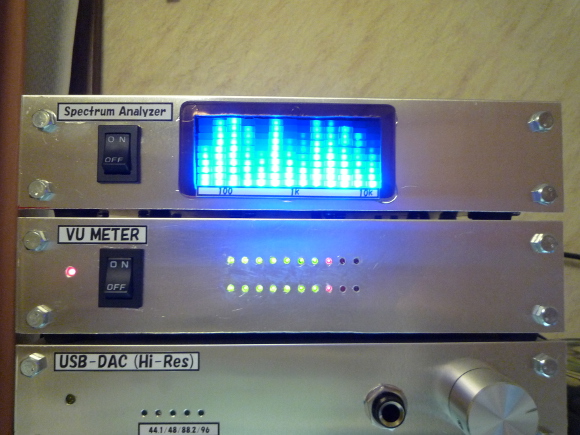 | メーカー製高級オーディオと見間違える(?)ような完成度ですね。VUメーターのLED点灯レベルは基準のオーディオスイープ信号などを再生して、0dB時に全てのLEDが点灯するようにすれば良いと思います。(最近のCDは目いっぱい振り切れるものが多いですね) | |