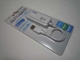 | こんな感じにすると良いでしょう。次にUSB変換装置です。これはプラネックスコミュニケーションズ製PL-US35APを使います。モノラルマイクをUSBに変換してくれます。これは改造せずそのまま使います。手始めにこの機器の周波数特性を調べておきましょう。 | |