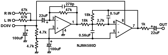 | センターウーハーですので、低域だけ通すための回路が必要になります。WEBをサーチしていたら同じような製作がありましたので、そのまま使わさせて頂きました。公開されている方に感謝いたします。 | |