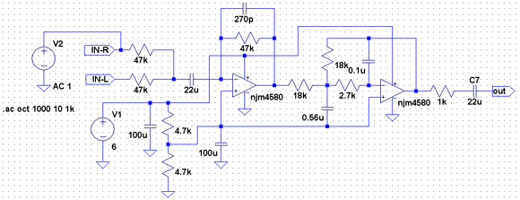 | WEBには100Hzのローパスフィルタとの説明が」ありましたが、一応回路シミュレータで確認しておきます。回路シミュレータにはLTspiceを使用しました。フリーで使えて回路制限数が無いというシロモノです。 | |