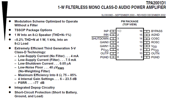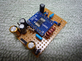 | センターウーハーには少し心細いですが、1WクラスのICです。これしか余っていませんでした。ステレオ分の基板からモノラル分だけを切り出しました。 | |
