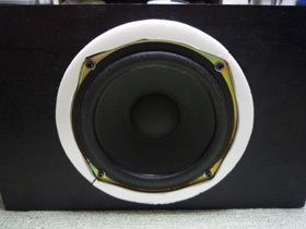 | さすがにミニコンから取り出したスピーカーなのでちょっと体裁が良くありません。ポリエチレンの高発泡ボードで飾りつけをしておきましょう。 | |