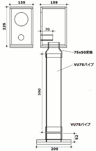 | VU75パイプが取り付けられるように改造します。 | |