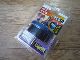 | さて、この状態からバスレフ用の穴加工を行います。穴系が小さいので、いつものスピーカーの穴を開けるようには行きません。そこでホームセンターで秘密兵器を見つけました。 | |
