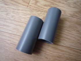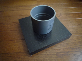 | VU25のパイプを70mmにカットしてはめ込みます。32mm径のホールソーを使えばぴったりの穴を開けることが出来ます。 | |
