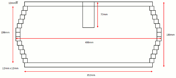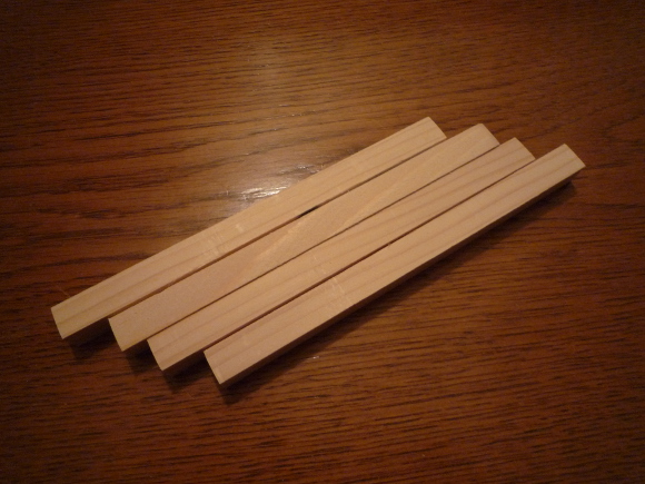 | それではエンクロージャーの部分を組み立てていきましょう。今回の12mmの角材を積み上げていきます。156mmにカットして使います。 | |