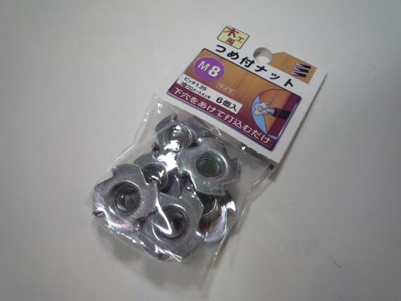 | ナットは必ず内側から埋め込んで下さいね。次に前面と背面の板に穴をあけます。 | |