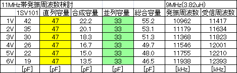 | 41mbの違いは局発の発振と同調のコイルとコンデンサだけです。今回局発のレベルが小さかったので10kΩの抵抗を無くしました。実際にはもう少し局発レベルを上げるために調整必要な部分があるかもしれませんね。最近の製作は完成度を上げるために周波数の計算をエクセルで行い、バラックを組んでテストしてから組むようにしています。今回は特に計算とテストがほぼ一致していたので驚きました。周波数が高くなるので局発の駆動電圧は5Vまででまかなえるようになりました。 | |