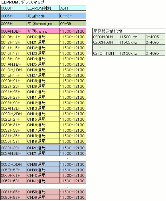 | 60ch分のプリセットと全周波数の局発制御電圧を外部記憶しています。 | |