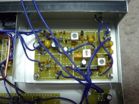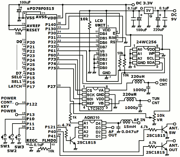 | 局発、同調とも駆動電圧のノイズが乗らないようにする工夫が重要になります。今回もLCフィルターを各所に入れて対策を行っています。駆動電圧が下がったのでOPアンプは使っておりません。アナログ的チューニングは相変わらず便利です。 | |