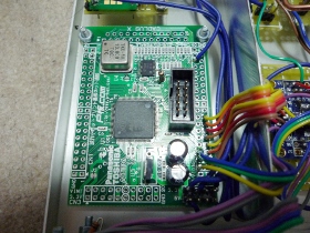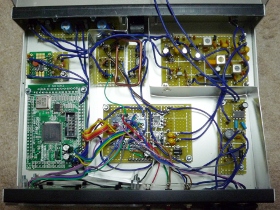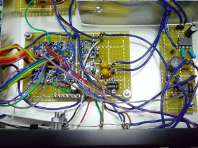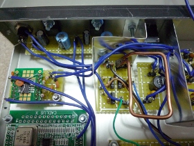 | CPLD回路、マイコン回路、チューナー回路をブロックにしてそれぞれの影響を受けにくくするためにアルミ板で分離配置しています。 | |