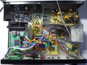 | 隠しモードを入れてあります。どうも温度特性に関する部品選定がよくなかったせいか、気温が低い時に周波数の低いエリアで同調に時間が掛かる状況を生じています。局発が安定する周波数になるように局発へ印加する電圧は充分に調整済みですが、まだ少し時間を生じています。そこで電源投入時(SW4押し)にSW2を同時押しすることで「AUTO SCAN」モードに自動的に移るようにしました。このモードは全ての周波数において同調する電圧を自動的にスキャンして記憶するモードです。これを行うことで選局する時の時間が短縮出来て大変便利です。もっとも通常操作でも同調することでその時の局発電圧設定値を記憶しています。 | |