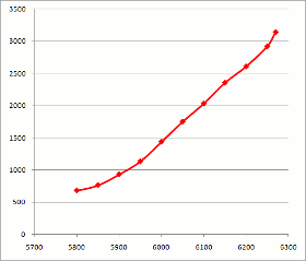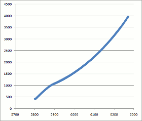 | 局発と同調のバリキャップへの制御電圧は今回5Vを超えましたのでOPアンプで約1.75倍しています。最大で約8.5V程度になっています。上記グラフの縦軸はDACへの設定値です。 | |