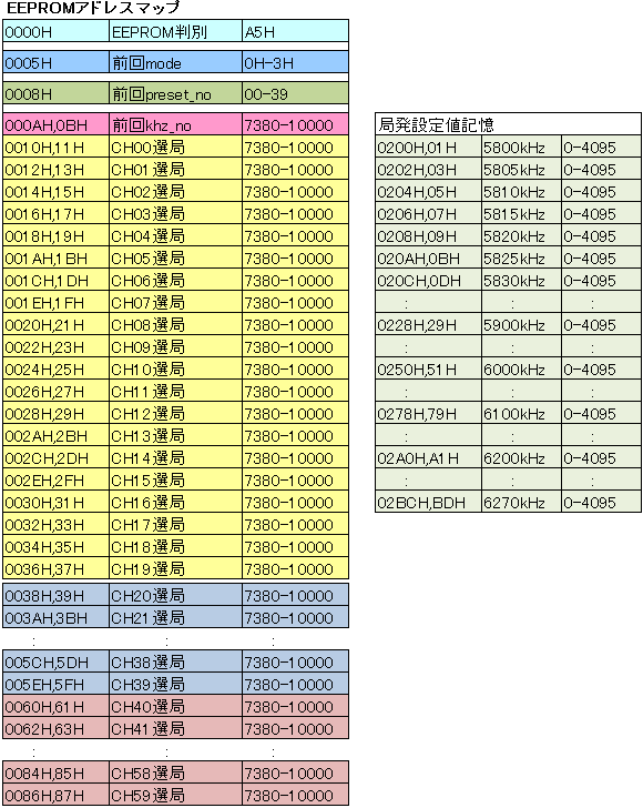| 60ch分のプリセットと全周波数の局発制御電圧を外部記憶しています。 | |