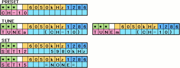 | マニュアル選局の表示を追加しています。「TUNE」の後に「m」と表示されます。電源ON時にはどの周波数の受信機か表示されます。機種が増えた時には便利ですね。 | |