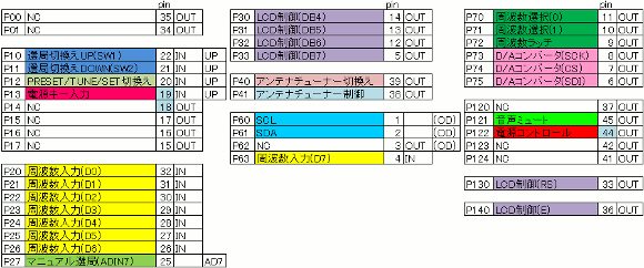 | 今回のポイントはボリュームによるマニュアル選局とCPLDからの周波数読み込みの省線化です。まずマニュアル選局ですが、アナログ的な操作をしたかったことから考えました。直接ボリュームでバリキャップを制御するとマイコンとの連動性が取れないので、一旦ボリューム値をマイコンのA/Dコンバーターで読み取ってボリューム位置に応じた周波数を選んで設定することでアナログ的な操作を実現しています。この操作でも周波数ステップは5kHzですので的確な選局が可能です。ボリュームの位置を単純な区切りで数値化すると変化点で周波数が振動することがあるので簡単なシュミット制御を仕組んでいます。CPLDからの周波数入力はなぜ今まで考えつかなったか不思議に思いますが8bitのデータを3回読み込むことで配線数を減らすことが出来ました。ポートが余りましたので、将来の外部からの制御に対応出来るようになります。 | |