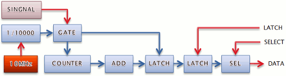 | 今まで24bitパラレルで周波数を読み込んでいましたが今回より8bitを3回読み込みます。マイコン側のポートを有効に使うことが出来ます。CPLD側で一旦ラッチするので読み取り間違いも無くなると思います。 | |