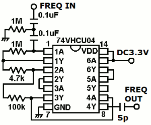 | 最近の製作では記載出来ておりませんでしたが、CPLDの周波数入力部にはバッファが必要です。これがないとうまく周波数を読み込めませんね。全体的な回路構成としてはなくしたい部分です。今後の検討課題としましょう。 | |