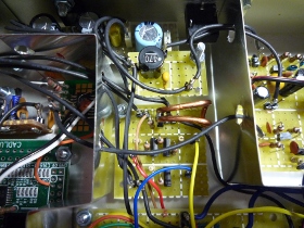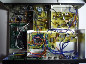 | CPLD回路、マイコン回路、チューナー回路をブロックにしてそれぞれの影響を受けにくくするためにアルミ板で分離配置しています。 | |