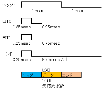 | AMラジオのループアンテナの制御と同じフォーマットです。周波数をそのまま16bitのデータで出力します。 | |