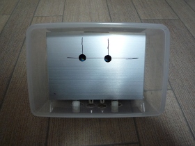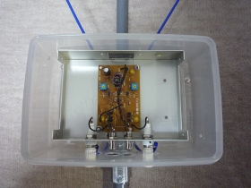 | (ループアンテナの基板はアルミケースに入れてタッパに入れます) | |