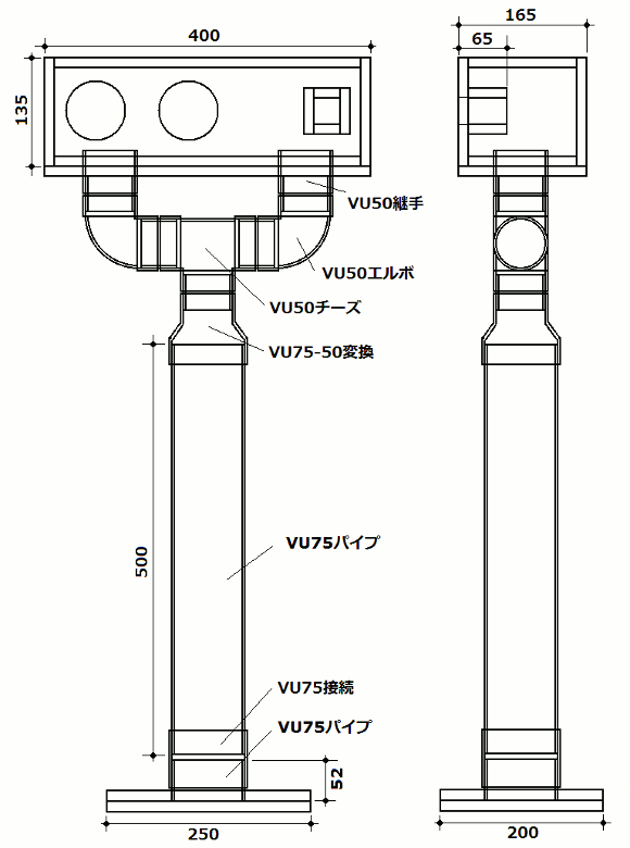 | (Y字部があるので塩ビパイプは短くなりますね) | |