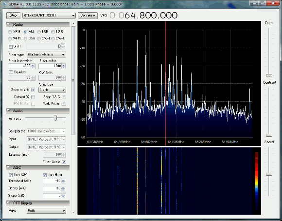 | 私の設備の場合、この周波数が限界です。どの受信帯を聴いてもとても楽しいです。自作の短波ラジオでも同じくらい受信出来ますが、SDRの場合は受信帯域の全体を見渡せるのがとてもいいですよね。 | |