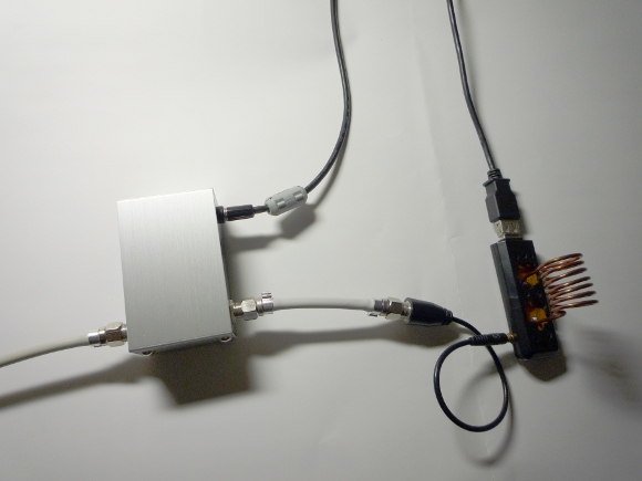 | SDR USBドングルの楽しみ方はまだまだ沢山あります。今回はアップコンバータによる短波受信を楽しみましょう。USBドングルは特性上50MHzより上の周波数からしか受信出来ません。しかしながらこの小型に秘められた受信能力は相当なものです。世の中にはすごい人がいらしゃいます。アップコンバータを通して下側の周波数を上側にアップして受信を楽しんでおられます。今回私も成功しましたので、紹介させて頂きます。 | |