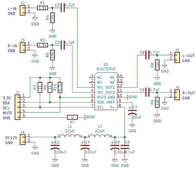 | 電子ボリュームの基板はステレオ用ですが、LRをシュートしてモノラルとして使用します。 | |