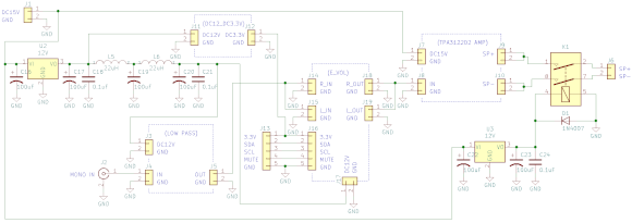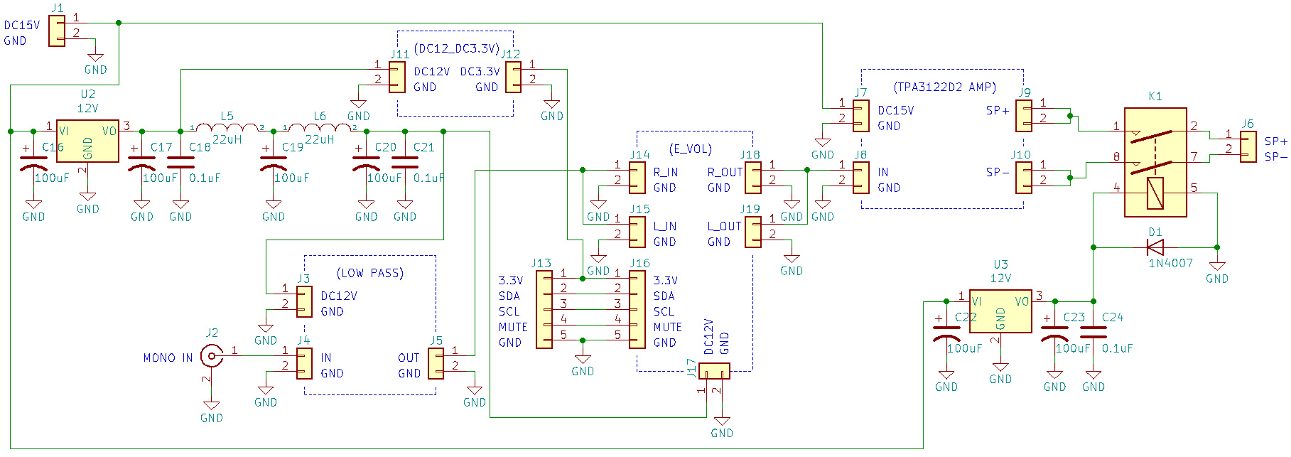 | (サブウーファー用アンプと電子ボリューム周辺の回路図) | |