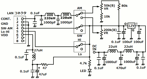 | 上図のようにΔLOOP7製作書籍の基板を改造して使っています。ここでのポイントはLANのコネクタではアンテナ切換えやチューニングを行い、ΔLOOP7のアンテナ出力は同軸ケーブルで接続している点です。WEB上なので皆さんが記事を書かれているΔLOOPXでの接続(全てをLANケーブルのみで接続)とは異なりますので、ご注意下さい。それにしてもΔLOOP7は優秀なアンテナです。作者の方に改めて感謝したいと思います。 | |||||||||||||||||||||||||||||||||||||||||||||||||||||||||||||||||||||||||||||||||||||||||||||||||||||||||||||||||||||||||||||||||||||||||||||||||||||||||||||||||||||||||||||||||||||||||||||||||||||||||||||||||||||||||||||||||||||||||||||||||||||||||||||||||||||||||||||||||||||