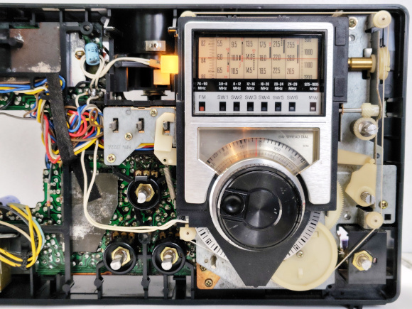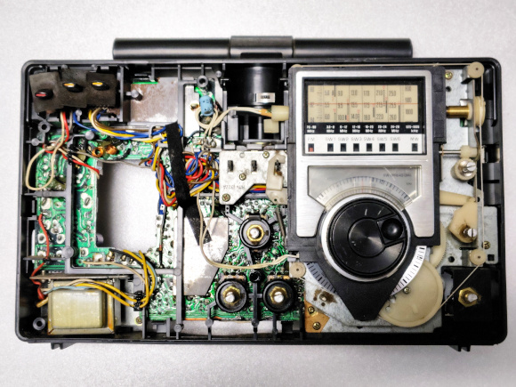 | どの受信モードにしても、全く動作しません。インジケータや周波数部分を照らすはずのランプも点灯しません。決まりです、内部確認作業への移行。早速準備を進めましょう。 |