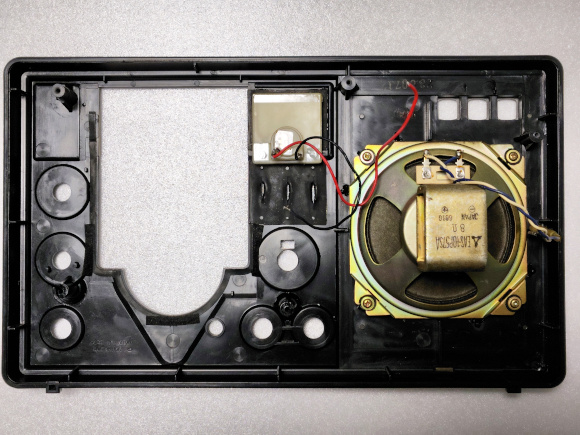 | スピーカーの線はコネクタ式になっているので、取り外しは簡単ですが、インジケータの線は私の場合、端子にはんだ付けされていましたので、はんだごてで丁寧に取りはずましょう。周波数ダイヤル部分も取り外すことは可能ですが、まだそこまでする必要はないので、このままにしておきます。但し、メカ部分のワイヤーはこのラジオの生命線ですので、作業中誤って損傷させることがないように気を付けましょう。 |