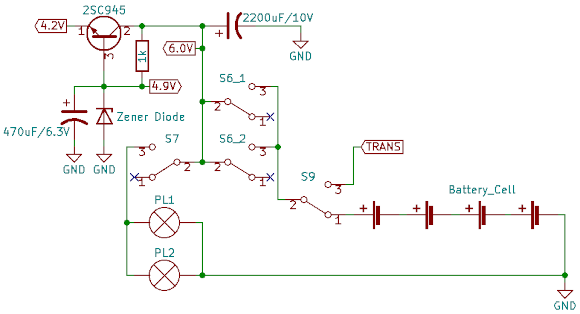 | その回路図から電池駆動の電源部分のみの回路図を作成しました。 |