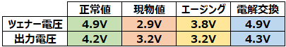 | 現物の電源回路の電圧を測定しました。正常動作に程遠い電圧値です。まずPOWERスイッチをエージングしました。確実にするなら、スイッチを分解清掃するのがベストですが、基板も古いので、ここはエージングに留めておきます。そうすることで、電圧が上昇してきました。LIGHTスイッチもエージングすることで復活しました。 |