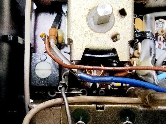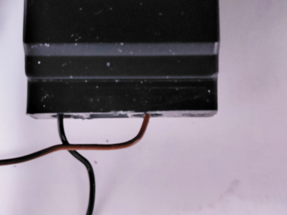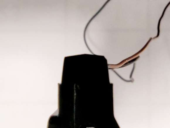 | 上の写真の9時方向にある茶色のリード線と、3時方向真ん中寄りにある黒色のリード線です。 |