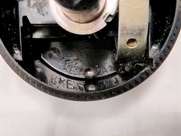 | 完全に崩壊しています。崩壊部分から金属ボールが飛び出したと思われます。崩壊部分をパテで埋めるとか、小手先での修復は長持ちしませんので、この部分を別部品で複製再現したいと思います。まず大体の寸法を測定します。 |