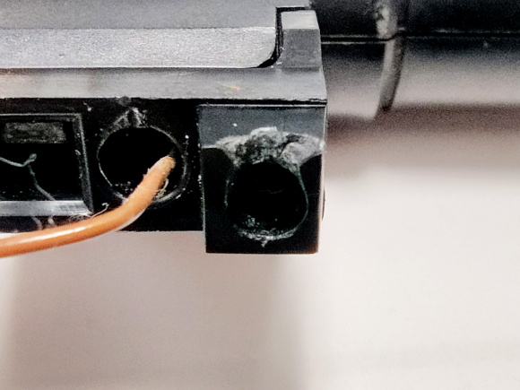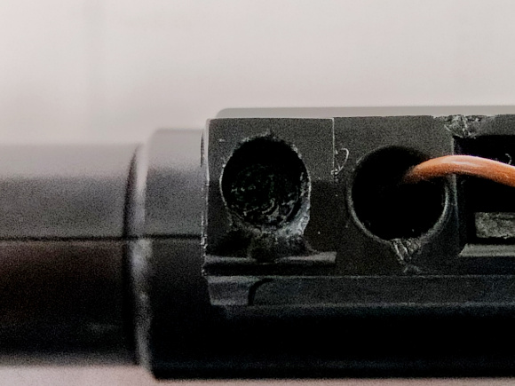 | 約φ4mm程度の穴が開いています。ここにバネを保持します。 |