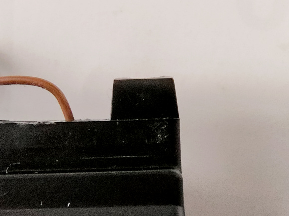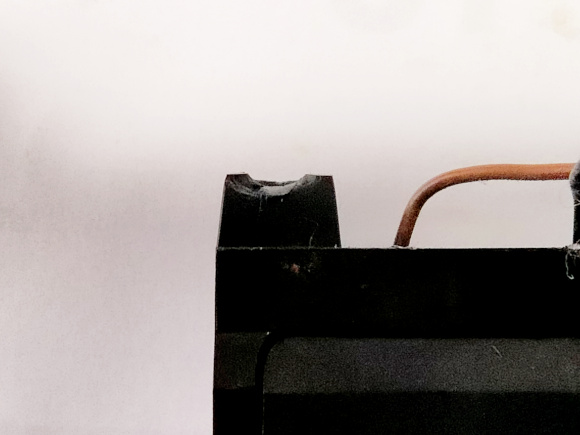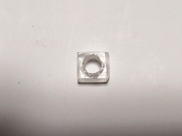 | 元の台形部分はニッパーで大まかに取り除いた後、やすりで仕上げます。元の穴がわずかに残るので、位置合わせに使えそうです。 |