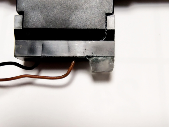 | アクリル溶剤で、双方の樹脂が溶けて固定されますので、非常に強力と思います。これを、回転体に戻します。また金属棒を打ち込むのに苦労しますが、なんとなやり遂げて下さい。 |