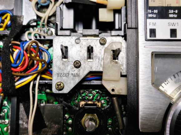| スイッチを取り出すためには、ダイヤル選局のメカ構造を取り外さなければなりません。やり方はAIに聞けばそれなりのサイトを教えてくれます。私は海外の方のYouTubeが参考になりました。 |