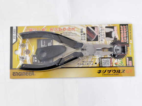 | ダイヤル選局のメカ構造を取り外す時に、私は難関に突入しました。クリスタルマーカー部分のスイッチの小さいネジがどうしてもドライバーで外せないのです。ネジ山が合うドライバーが無いというか、合ってもネジがきつ過ぎて緩んでくれないというか。そこで、ネジザウルスを購入してきました。わざわざ2本のネジを外すためだけに。まあ今後も他の作業で活躍してくれるのを期待しましょう。 |